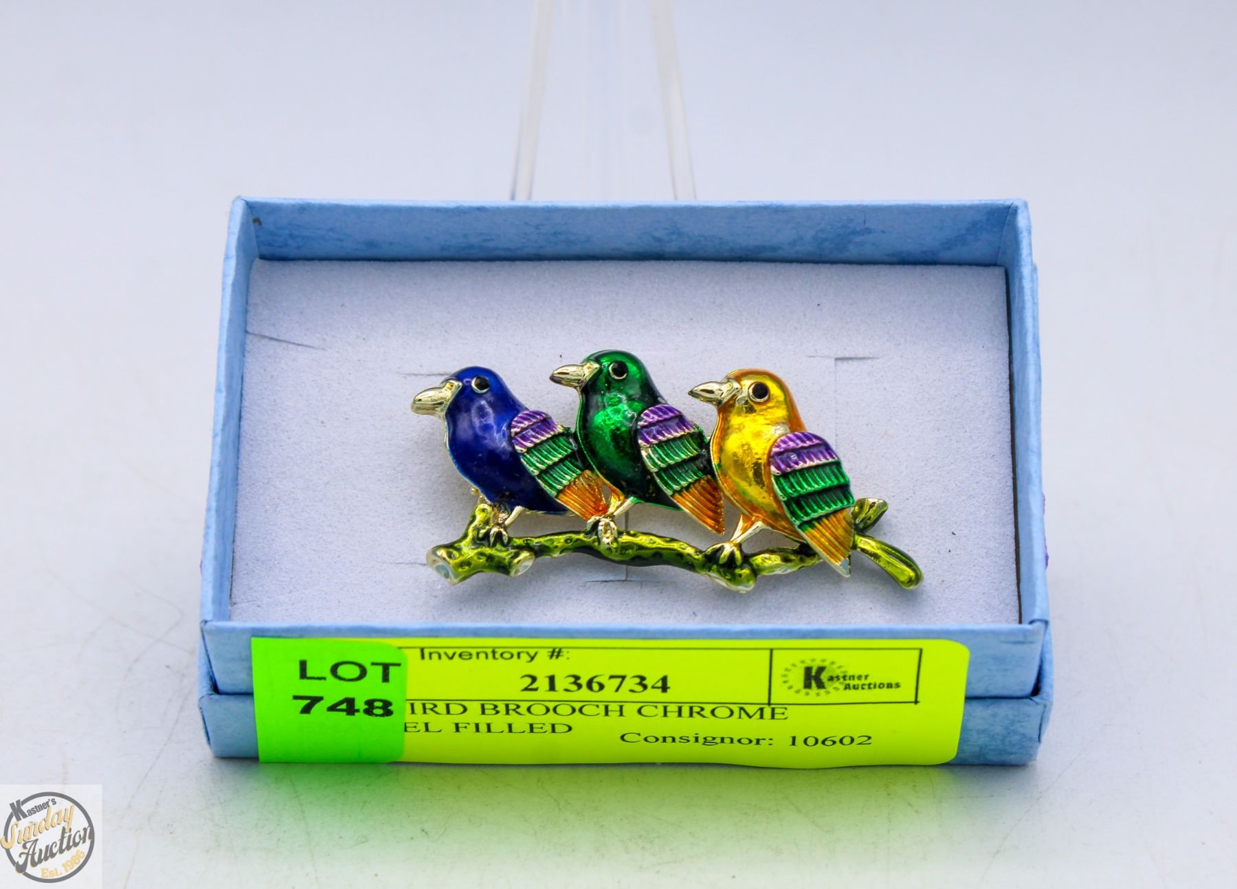 NEW BIRD BROOCH CHROME ENAMEL FILLED