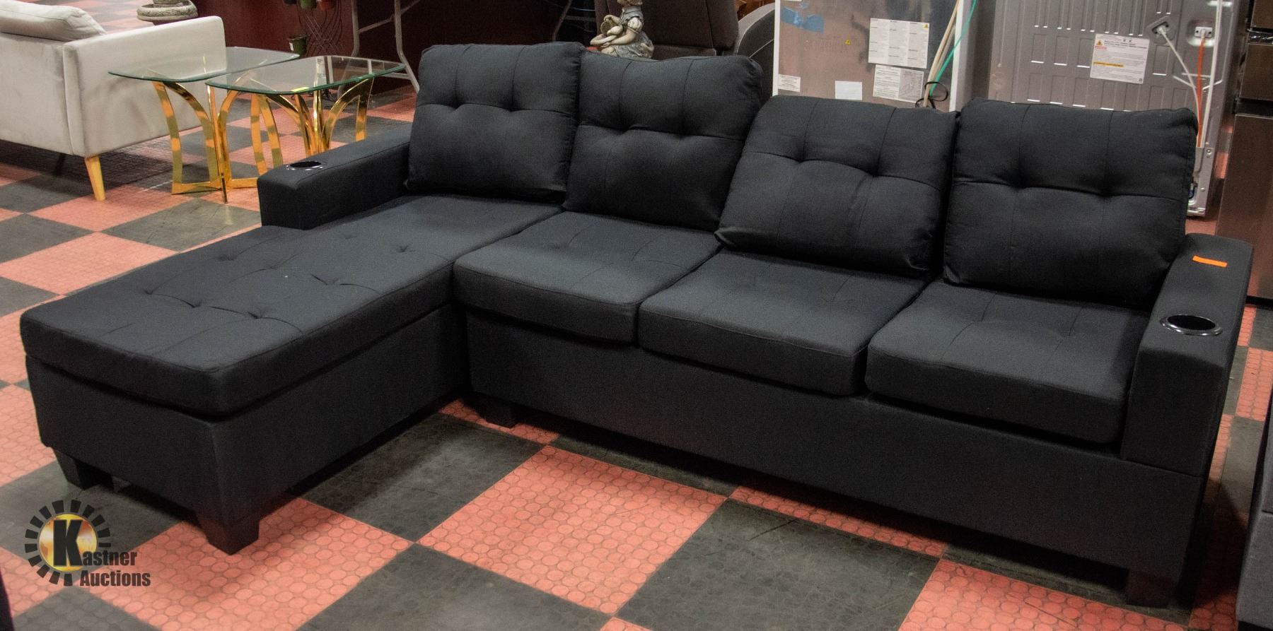 NEW BLACK FABRIC REVERSIBLE L-SHAPE SECTIONAL