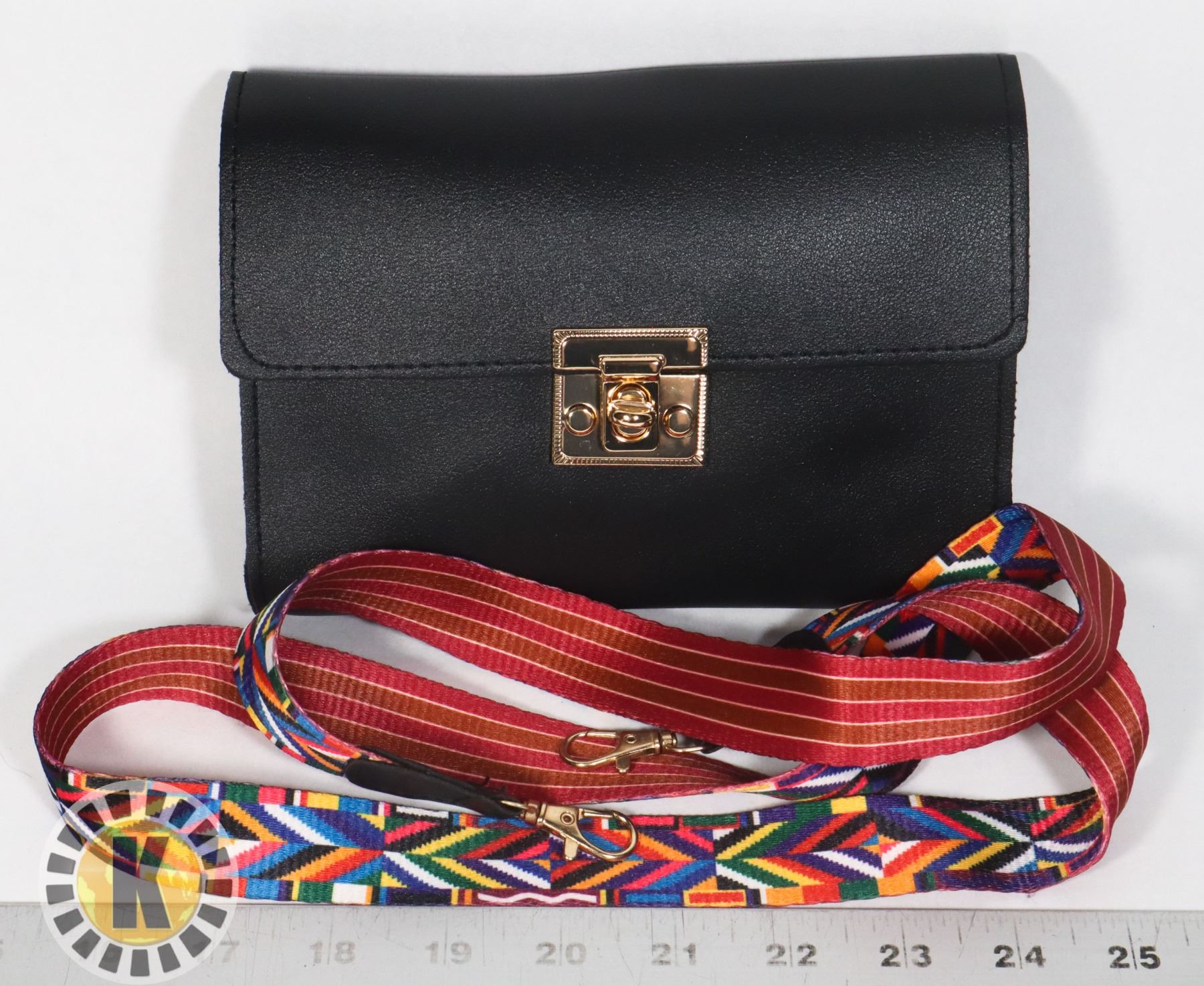 NEW BLACK HAND BAG WITH COLORFUL STRAP