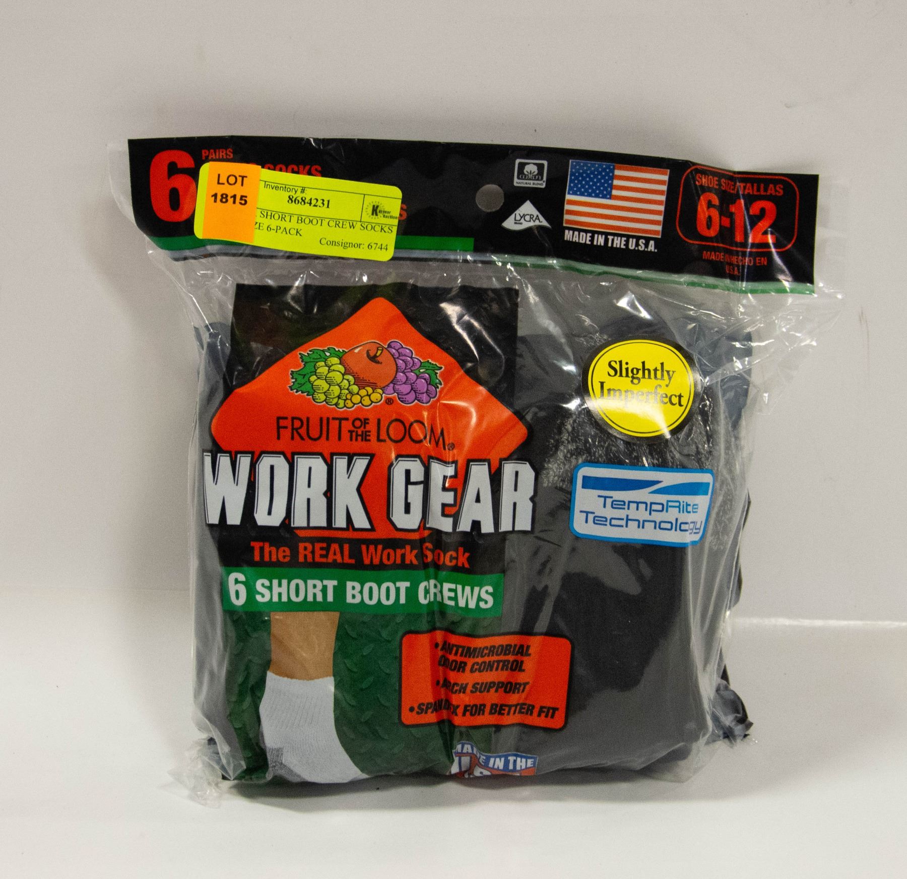 NEW BLACK SHORT BOOT CREW SOCKS 6-12 SIZE 6-PACK