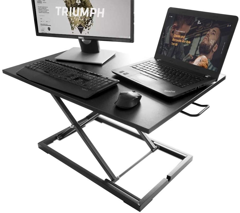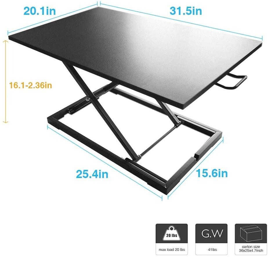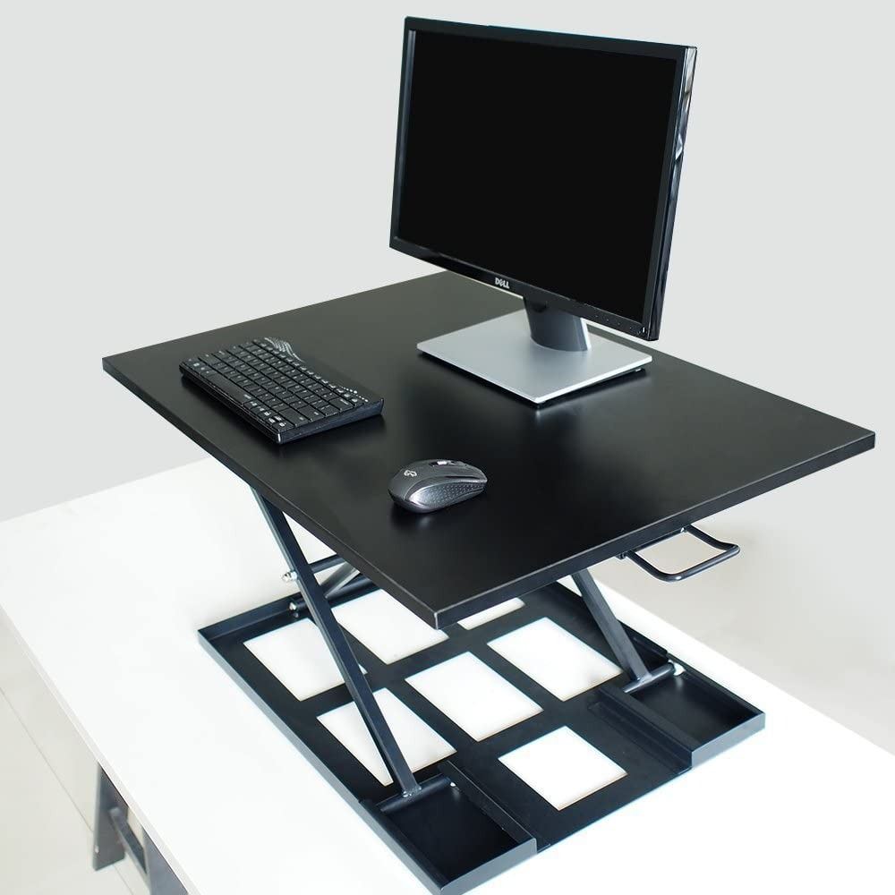 NEW BLACK STANDING DESK HEIGHT ADJUSTABLE CONVERTER, FULLY ASSEMBLED AND READY TO GO IN BOX, AMZ SES