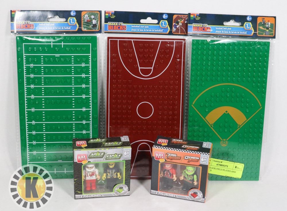 FITS LEADING BRANDS. 1 BASEBALL PLATE, ONE FOOTBALL PLATE, ONE BASKETBALL PLATE. 2 BOXES, EACH BOX HAS TWO FIGURES