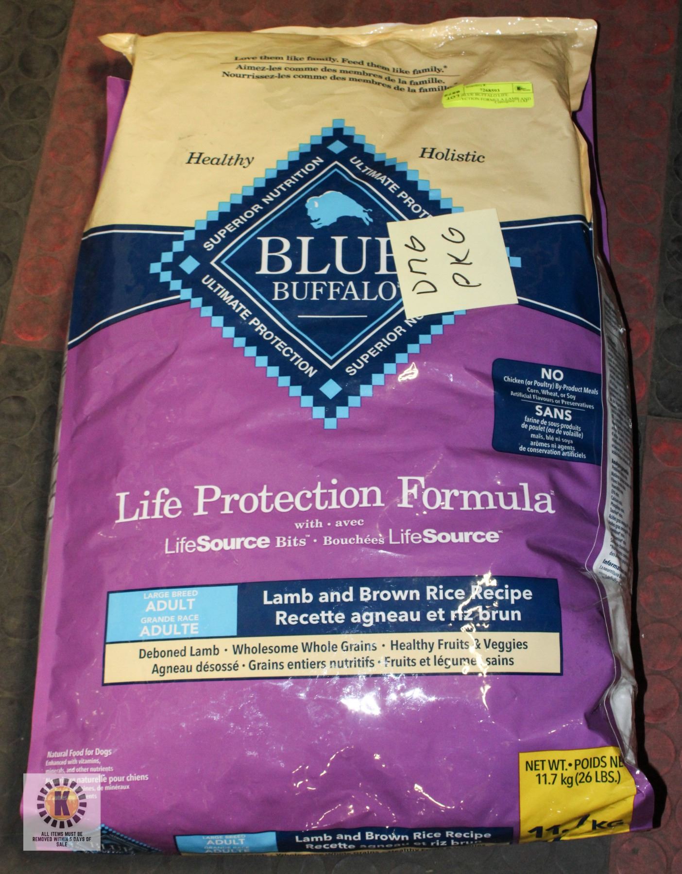 BROWN RICE 26LB BAG FOR ADULT DOGS, PACKAGE IS DAMAGED WITH MINIMAL PRODUCT LOSS, AMZ SES