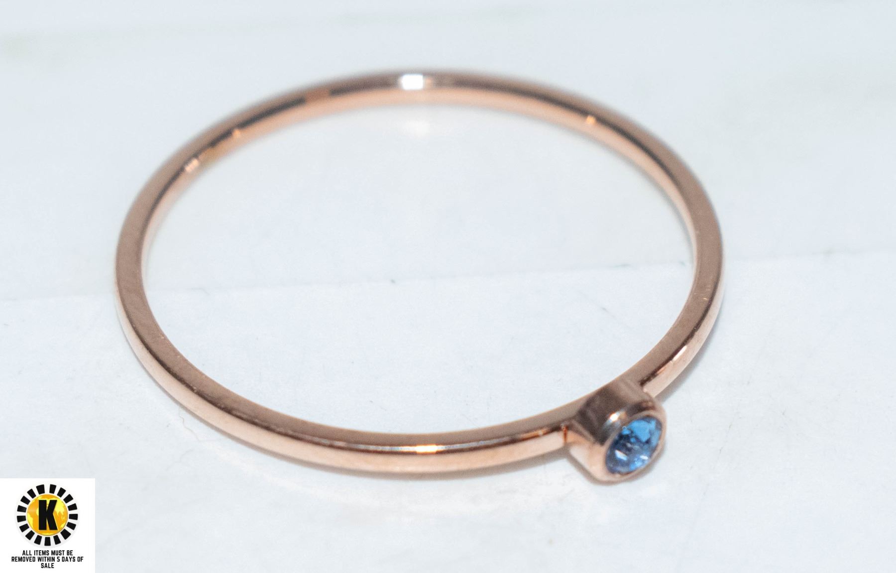 NEW BLUE CZ ROSE GOLD PLATED RING SIZE 7