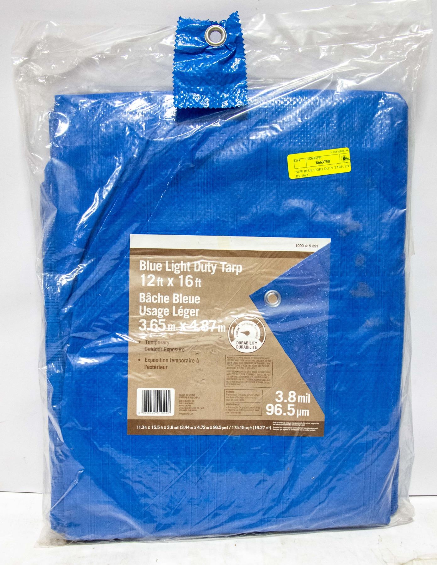 NEW BLUE LIGHT DUTY TARP, 12FT BY 16FT.