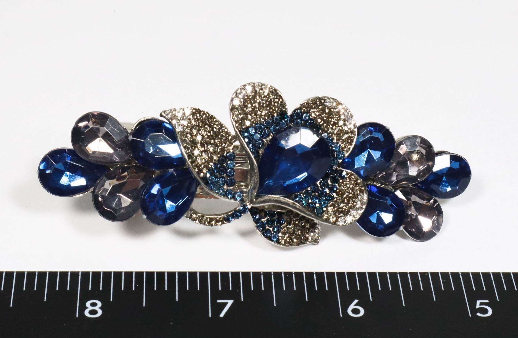 NEW BLUE RHINESTONE FLOWER FRENCH CLIP HAIR CLIP