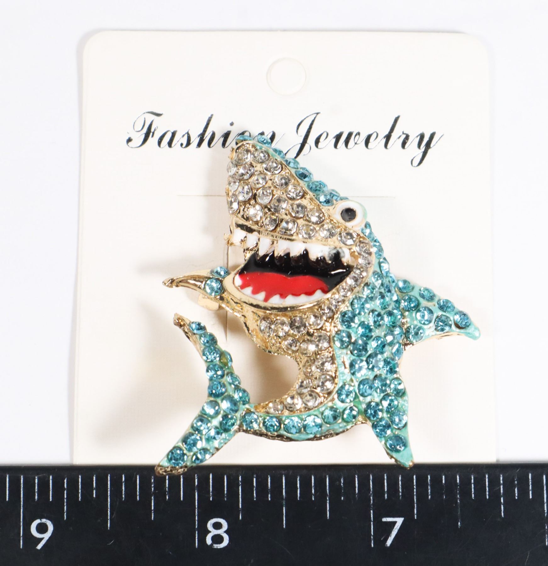 NEW BLUE RHINESTONE SHARK BROOCH/PENDANT