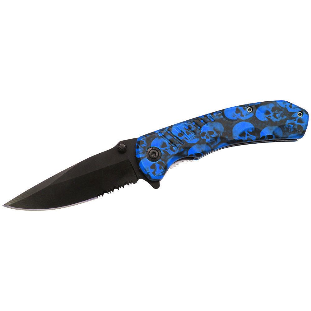 NEW BLUE SKULL CAMO SPRING ASSIST FOLDING KNIFE