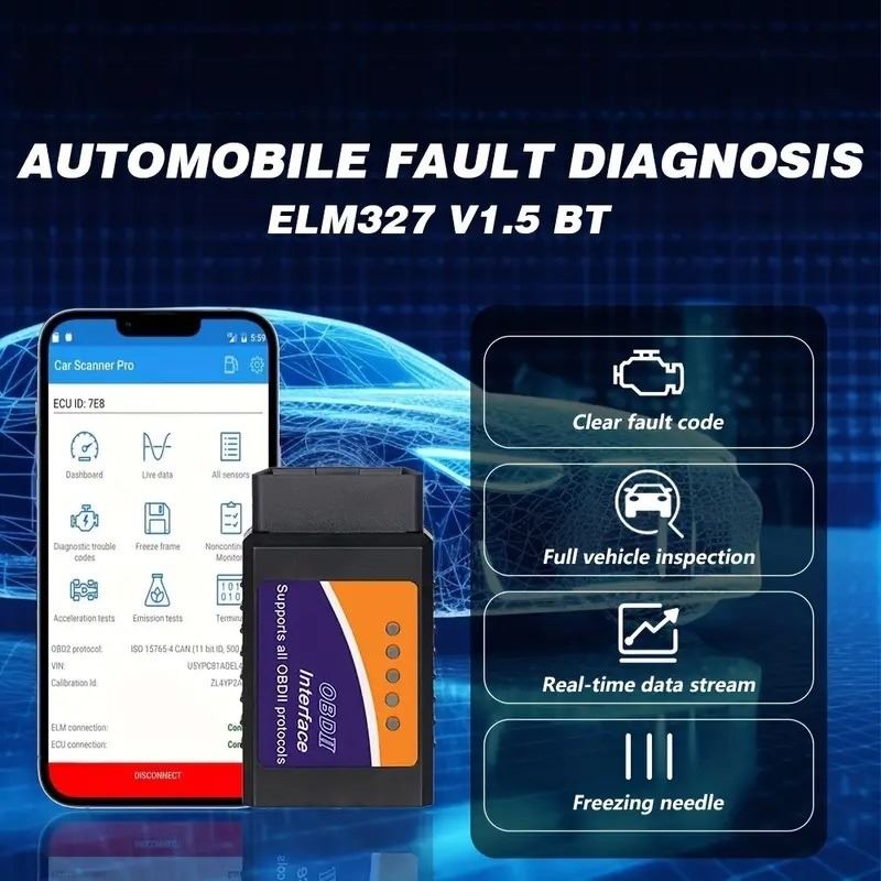 COMPATIBLE WITH ANDROID AND WINDOWS DEVICES/READS AND CLEARS DIAGNOSTIC TROUBLE CODES (DTCS) AND TURNS OFF CHECK ENGINE LIGHT/ SUPPORTS MULTIPLE OBD2 PROTOCOLS/CAN BE USED WITH VARIOUS DIAGNOSTIC SOFTWARE