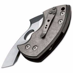 Geoff Blauvelt from Tuffknives in the U.S. has executed a truly unusual concept with his War Toad. As is typical for tactical friction folders, this rendition has a free-floating 440C stainless steel blade without a lock. The blade tang is used to secure the blade with the clenching hand, but is also ground to a chisel shape for use as a scraper or lever. The handle consists of G-10 (front scale) and titanium (back scale and spacer), and provides a rock solid feel. The hollow chisel grind gives the blade strength and effectiveness. The innovative pocket clip is designed for attachment to your equipment or gear. Features Blade Length: 2 inch Overall Length: 5 1/2 inch Blade Material: 440C Handle Material: G10 Includes: Innovative Pocket Clip