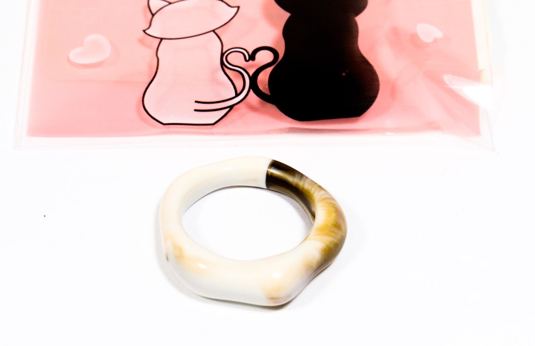 NEW BONE COLORED HALF HEXAGON RESIN RING
