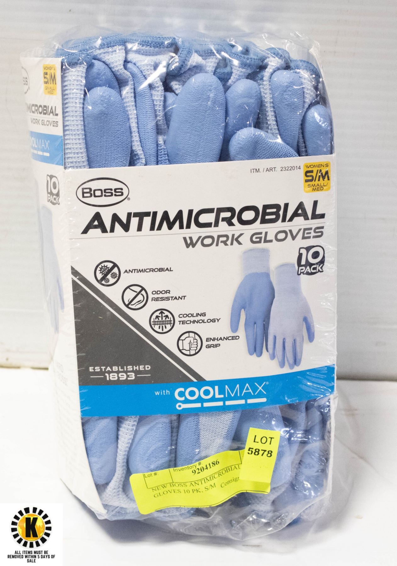 NEW BOSS ANTIMICROBIAL WORK GLOVES 10 PK, S/M
