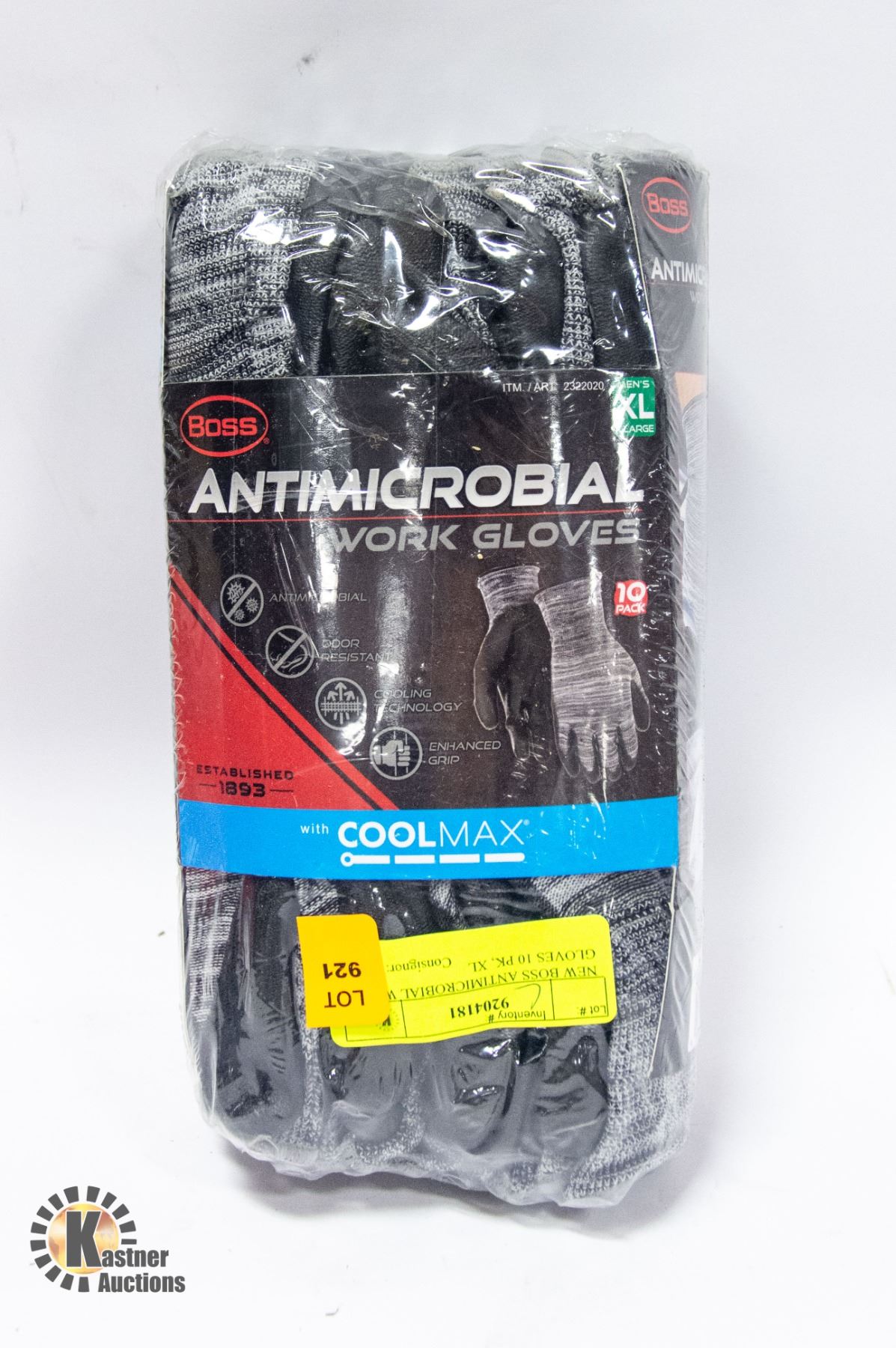 NEW BOSS ANTIMICROBIAL WORK GLOVES 10 PK, XL