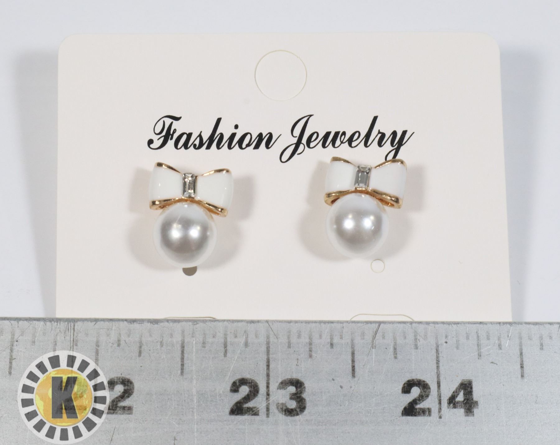 NEW BOW STUD EARRINGS FAUX PEARL AND RHINESTONE