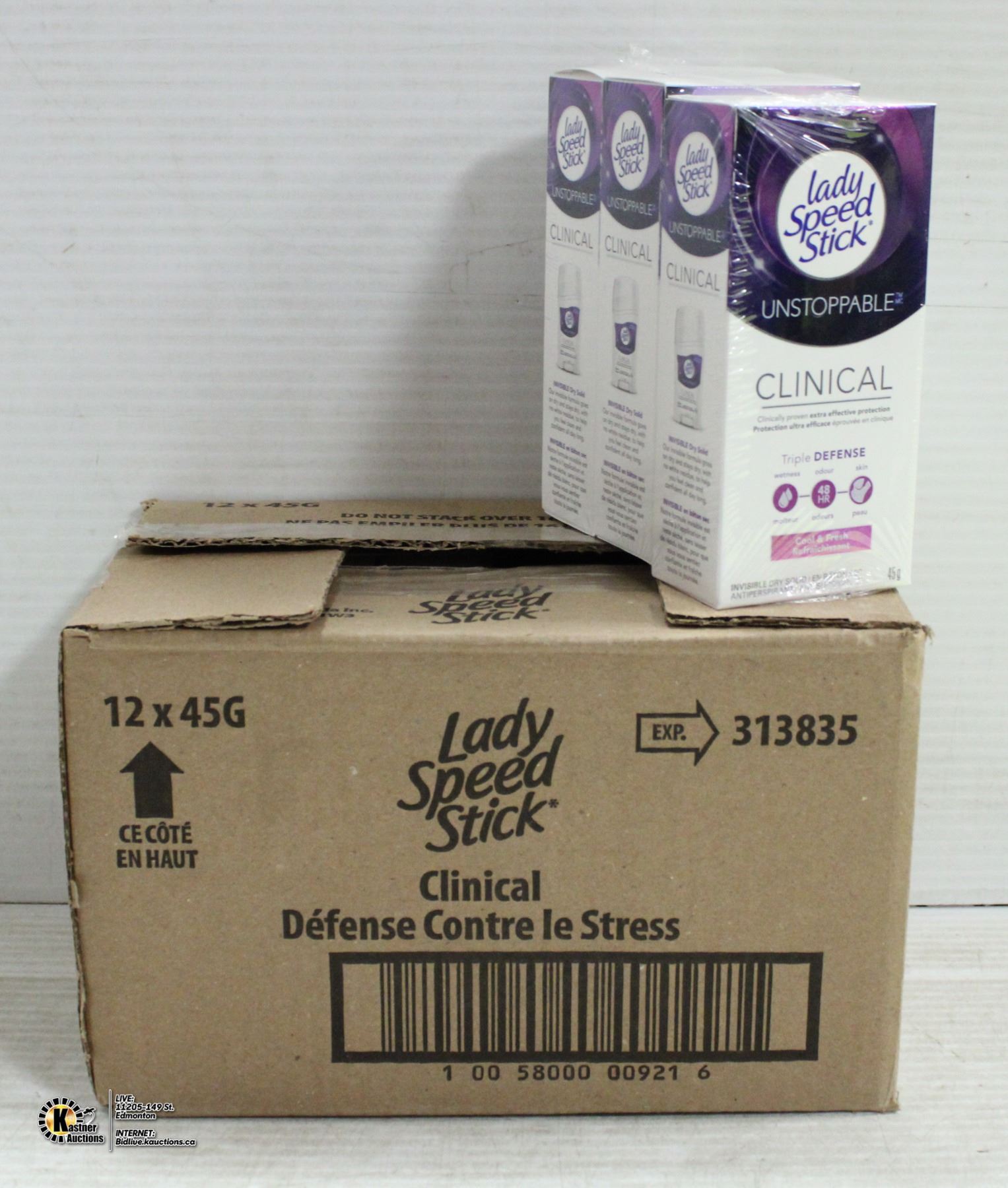 NEW BOX OF 12, 45G LADY'S CLINICAL SPEED STICK