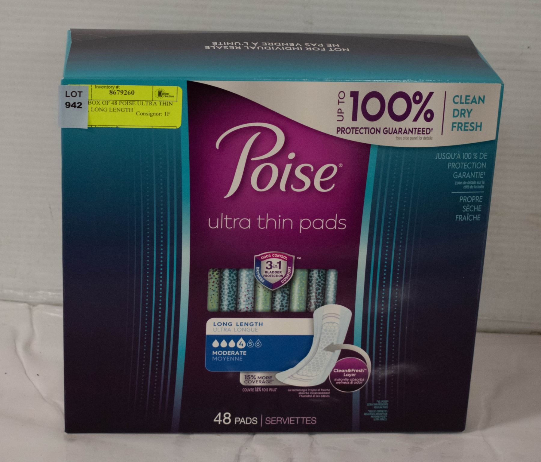 NEW BOX OF 48 POISE ULTRA THIN PADS, LONG LENGTH