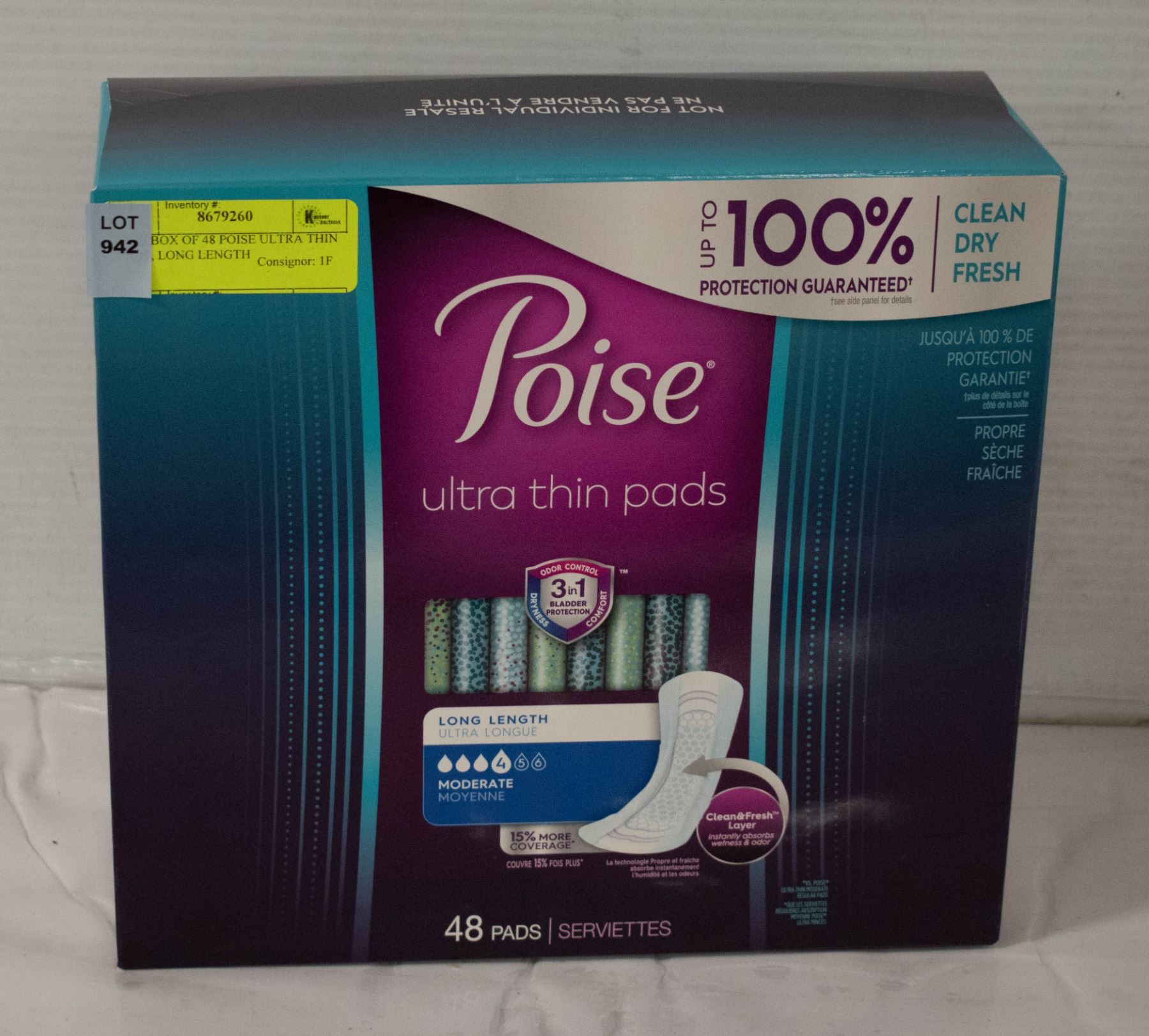 NEW BOX OF 48 POISE ULTRA THIN PADS, LONG LENGTH