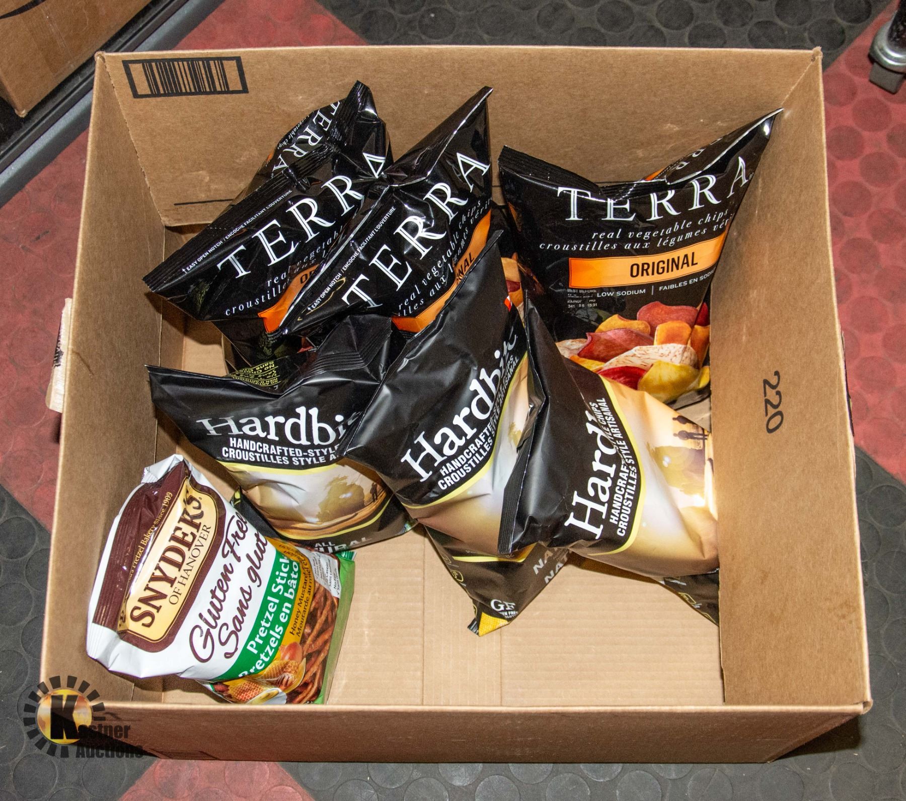 HARDBITE ALL NATURAL CHIPS, TERRA REAL VEGETABLE CHIPS, SNYDERS PRETZEL STICKS, VARIOUS BB DATES, AMZ SES