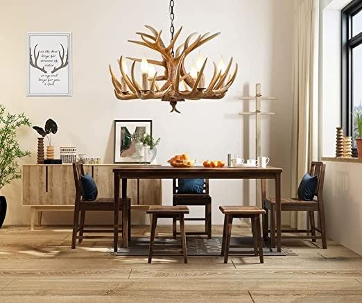 NEW BROWN ANTLER CHANDELIER 6 LIGHT