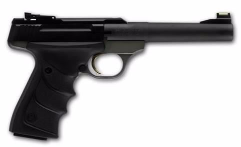 Mfr Items:Browning Category:PISTOLS Type:Pistol Action:Single Caliber:22 Long Rifle Barrel Length:5.5" Capacity:10+1 Safety:Manual Grips:Ultragrip RX Ambidextrous Sights:Truglo Front, Adjustable Rear Weight:34 oz Frame Finish:Blued Frame Material:Aluminum Alloy Barrel Type:Tapered Bull Slide Description:Blued