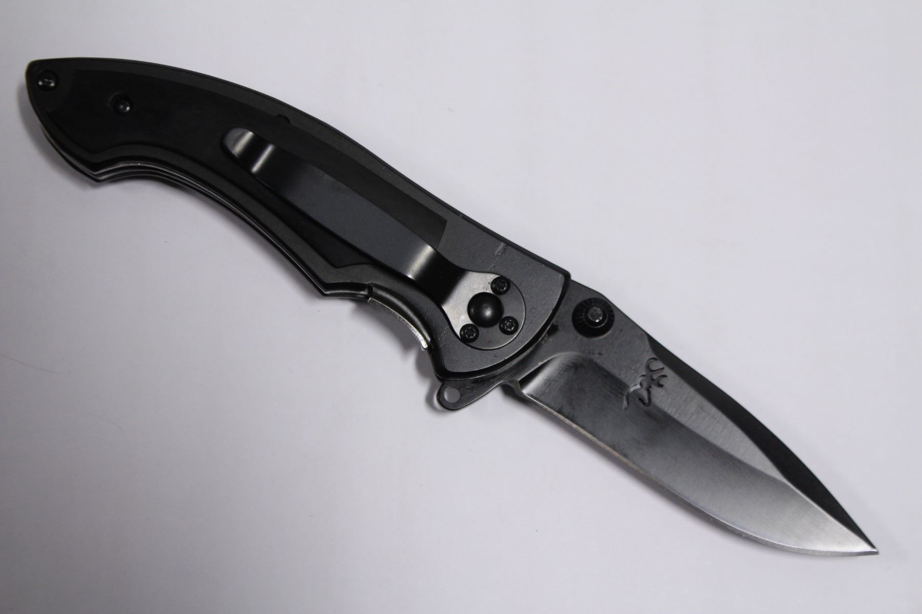 3.5" BLADE, RIVETED REINFORCED STEEL HANDLE W/ WOODEN PLATE, QUICK FLIP TAB W/ LOOPHOLE, EASY PRESS SAFETY RELEASE LOCK. HEAVY. BLACK FINISH. **ALL ITEMS MUST BE REMOVED BY 5PM SATURDAY, APRIL 8TH 2023. ALL REMAINING ITEMS WILL BE SUBJECT TO A $6.00 PER DAY STORAGE CHARGE. ANY ITEMS REMAINING AFTER MONDAY, APRIL 23RD, 2023 WILL BE CONSIDERED FORFEITED. NO REFUNDS WILL BE ISSUED FOR FORFEITED ITEMS. TO SCHEDULE A PICK UP APPOINTMENT CLICK HERE