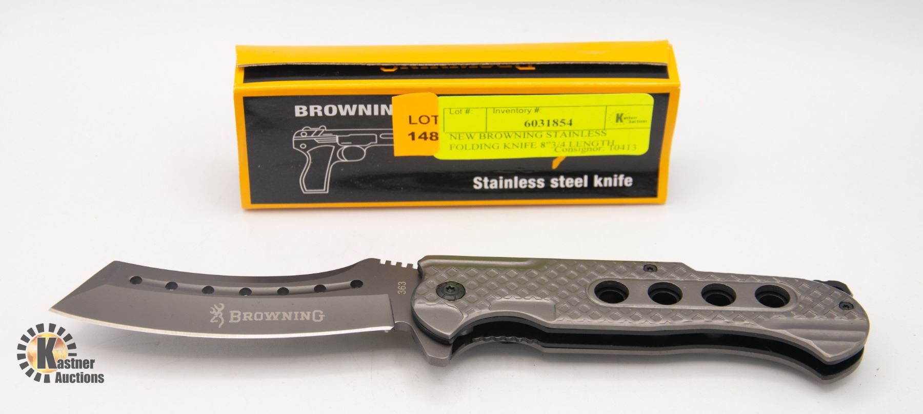 NEW BROWNING STAINLESS FOLDING KNIFE 8”3/4 LENGTH