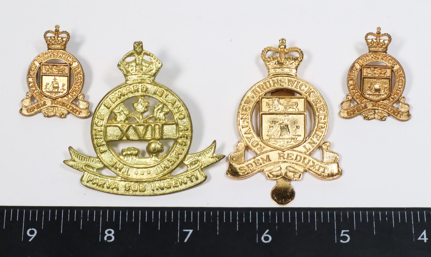 COLLAR BADGE SET CANADA MILITARY INSIGNIA QUEEN ELIZABETH II AND WW2 PRINCE EDWARD ISLAND REGIMENT CAP BADGE WORLD WAR TWO CANADA MILITARY INSIGNIA