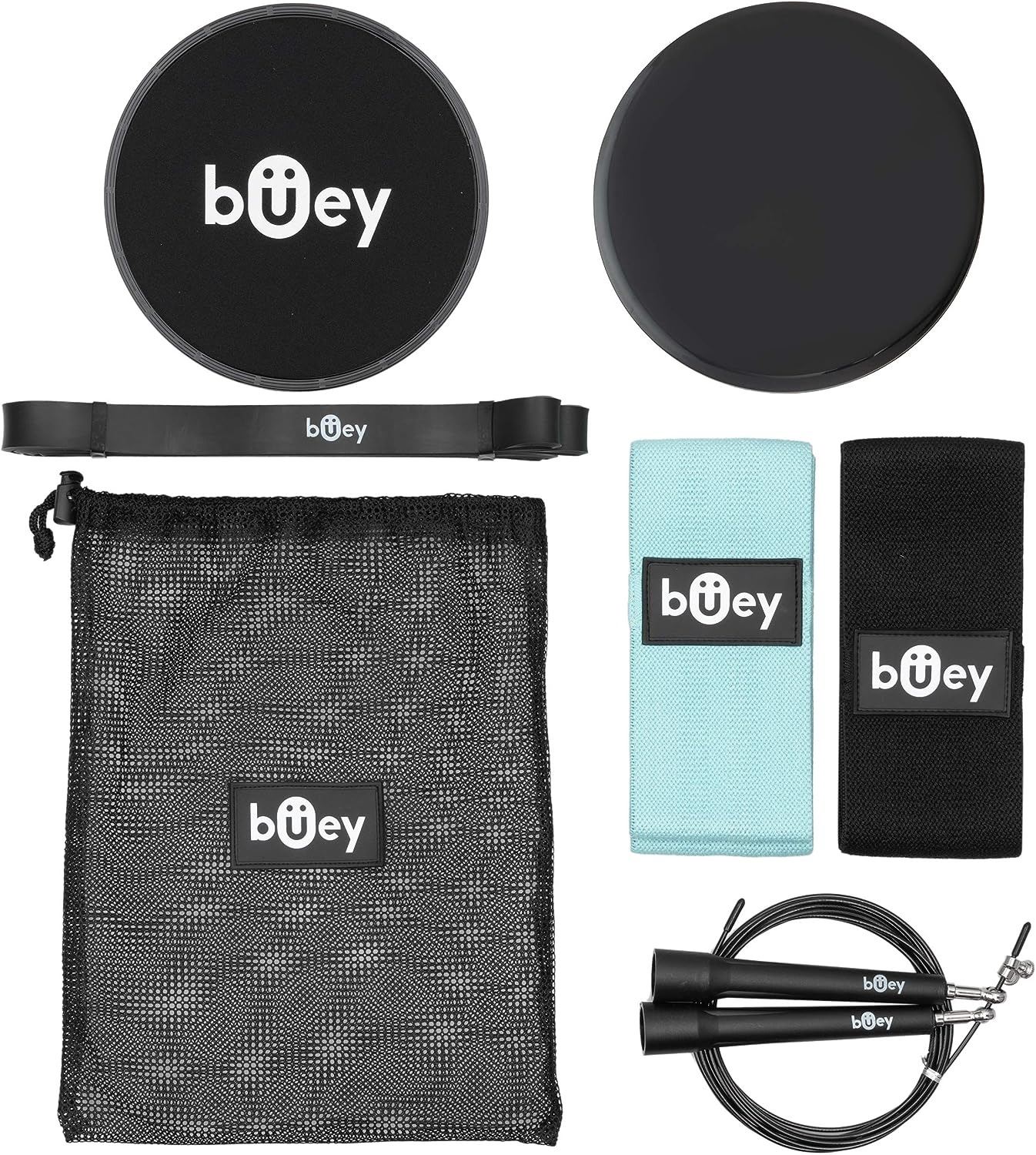 SET WITH RESISTANCE BAND CORE TRAINING SLIDERS, JUMP ROPE AND MUSCLE TONING BAND