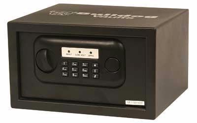 Mfr Items:Bulldog Category:GUN VAULTS AND SAFES Type:Gun Safe Color:Black Dimensions:7" H x 12" W x 10" D Entry:Electronic Keypad Lock Type:Electronic Keypad Material:Steel Finish:Matte Interior:Carpeted Floor