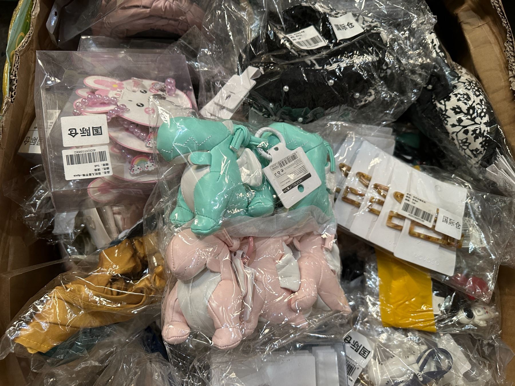 NEW - Box lot of misc. items; hair clips, earrings, keychains/etc. - NEW IN BOX