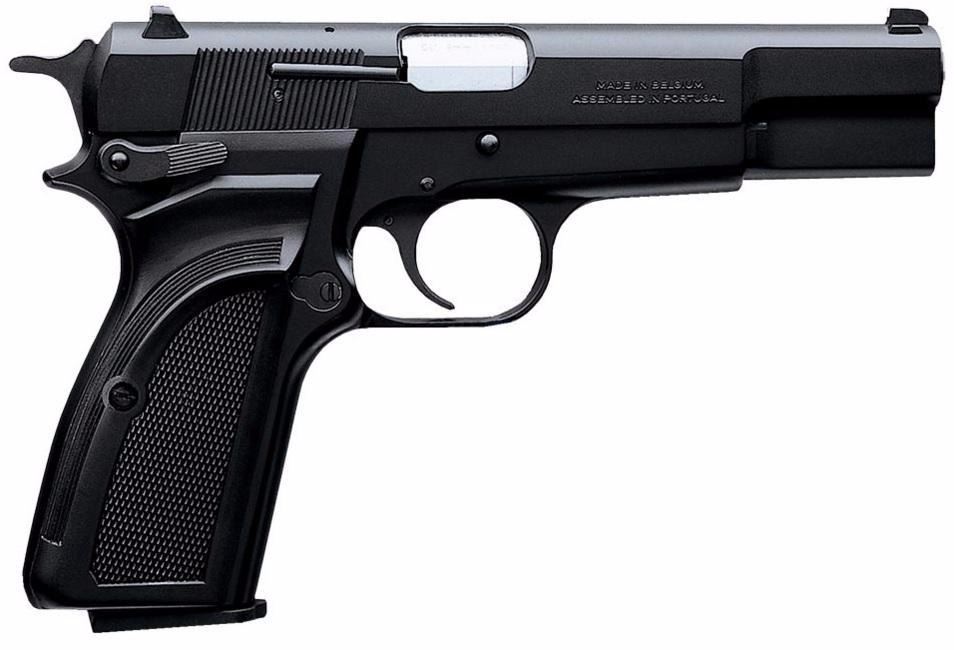Mfr Items:Browning Category:PISTOLS Mfr Scan:BPST Model:Hi Power Series:Mark III Action:Single Caliber:9mm Barrel Length:4.6" Capacity:10+1 Safety:Ambidextrous Thumb Grips:Black Synthetic Sights:3-Dot Fixed Weight:32 oz Frame Finish:Black Frame Material:Carbon Steel Slide Description:Black