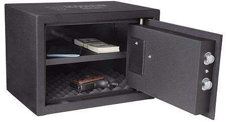 Mfr Items:Bulldog Category:GUN VAULTS AND SAFES Type:Personal Vault Color:Black Dimensions:9.75" x 13.75" x 9.75" Entry:Electronic Interior:Egg Crate Foam Bottom