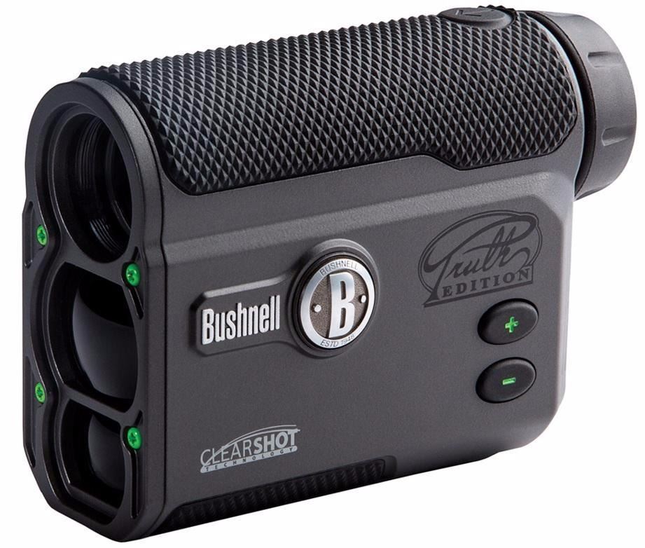 Mfr Items:Bushnell Category:RANGE FINDERS Mfr Scan:BUSH Model:The Truth Series:with ClearShot Magnification:4x Objective:20mm Min. Distance:7 yds Max Distance:850 yds Length:3.8" Weight:6 oz Finish:Black Accessories:Carry Case, Battery, Neck Strap Proofs:Rainproof Body Type:Monocular