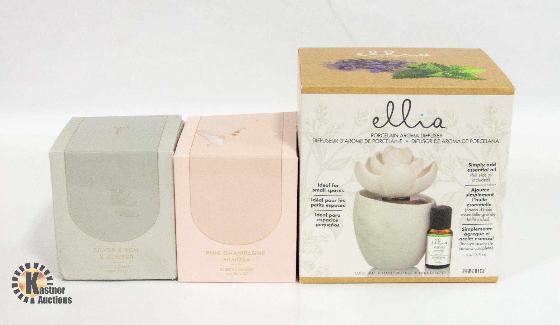 CHAMPAGNE ROSE & SILVER BIRCH JUMIPER BOTH 255 G W/NEW HOMEDICS PORCELAIN AROMA DIFFUSER **ALL ITEMS MUST BE REMOVED BY 5PM SATURDAY, DECEMBER 16TH 2023. ALL REMAINING ITEMS WILL BE SUBJECT TO A $6.00 PER DAY STORAGE CHARGE. ANY ITEMS REMAINING AFTER TUESDAY, JANUARY 2ND 2023 WILL BE CONSIDERED FORFEITED. NO REFUNDS WILL BE ISSUED FOR FORFEITED ITEMS. TO SCHEDULE A PICK UP APPOINTMENT CLICK HERE