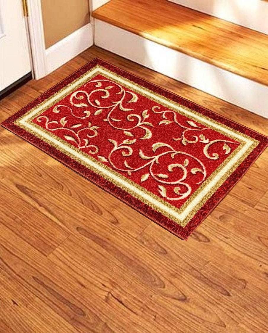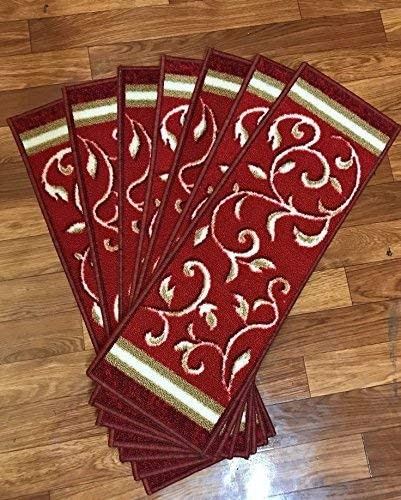 LANDING MAT, RED AND GOLD PATTERNED, STAIR PROTECTORS ARE 8.5 X 26", LANDING MAT IS 20 X 30", AMZ SES