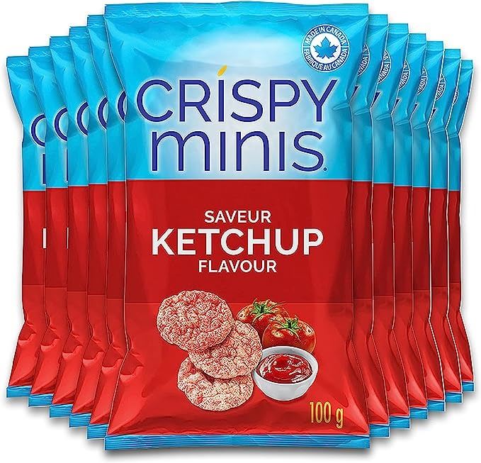 NEW CASE OF 12 CRISPY MINIS KETCHUP RICE CHIPS