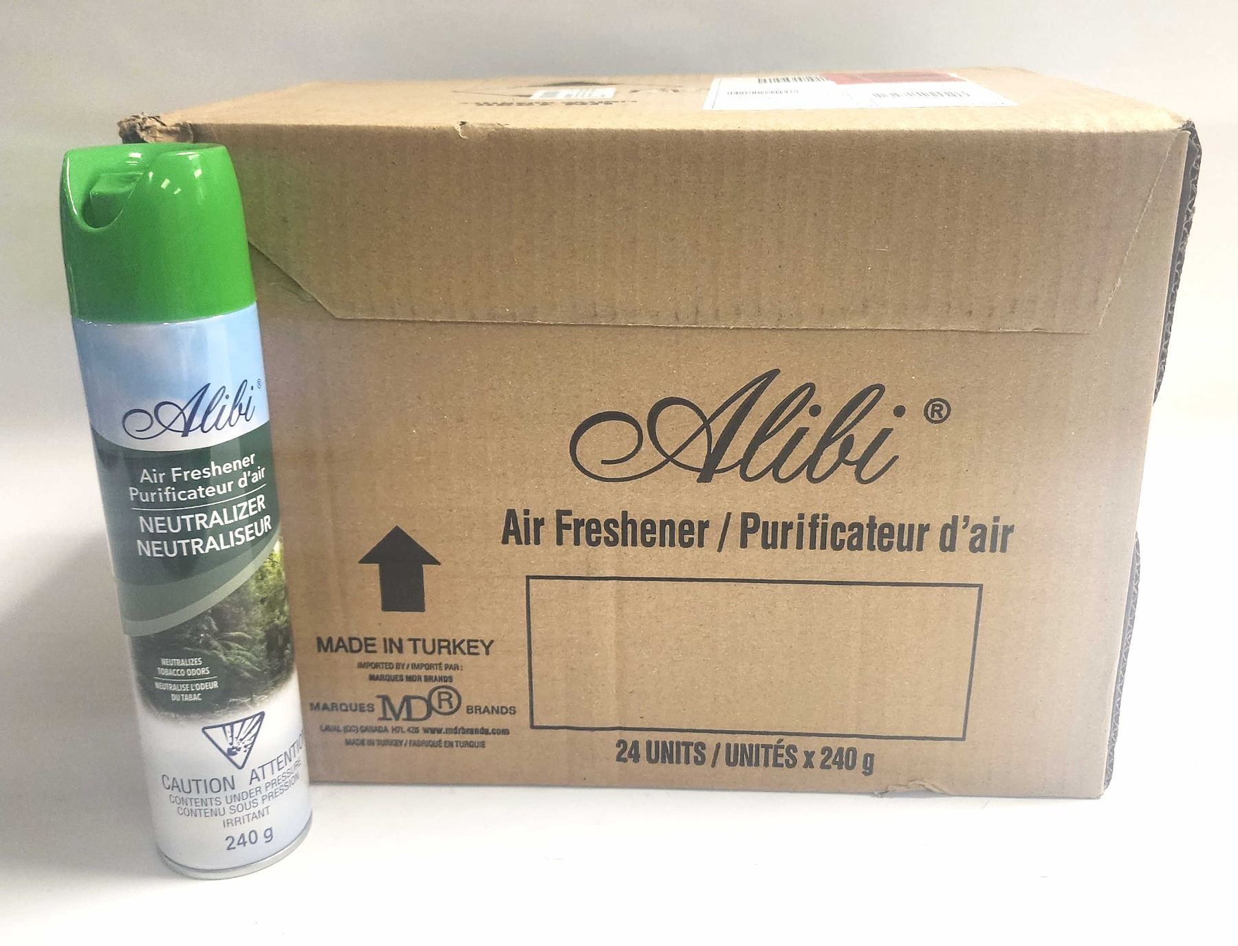 NEW CASE OF 24 BOTTLES WITH ALIBI AIR FRESHENER