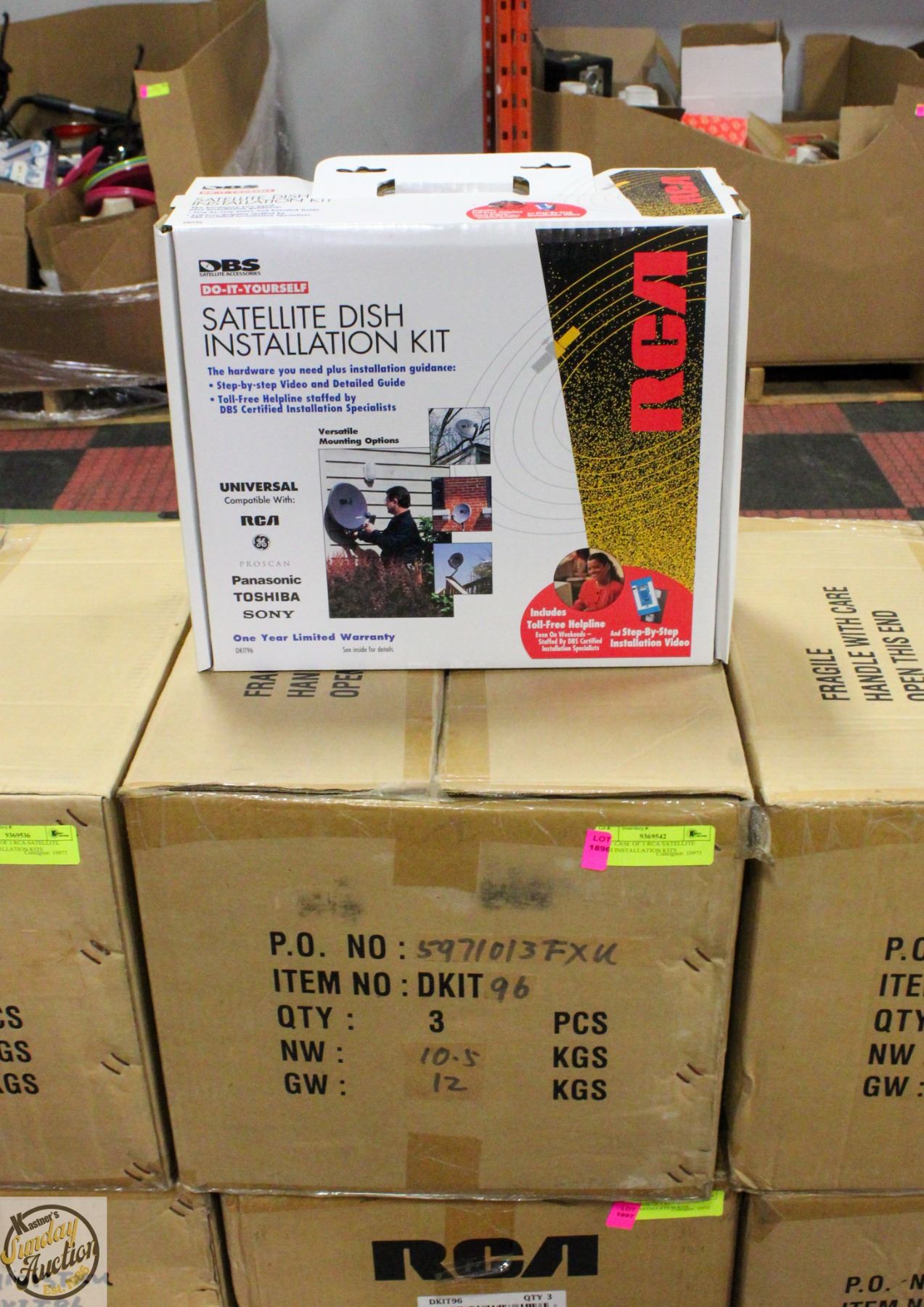 NEW CASE OF 3 RCA SATELLITE DISH INSTALLATION KITS