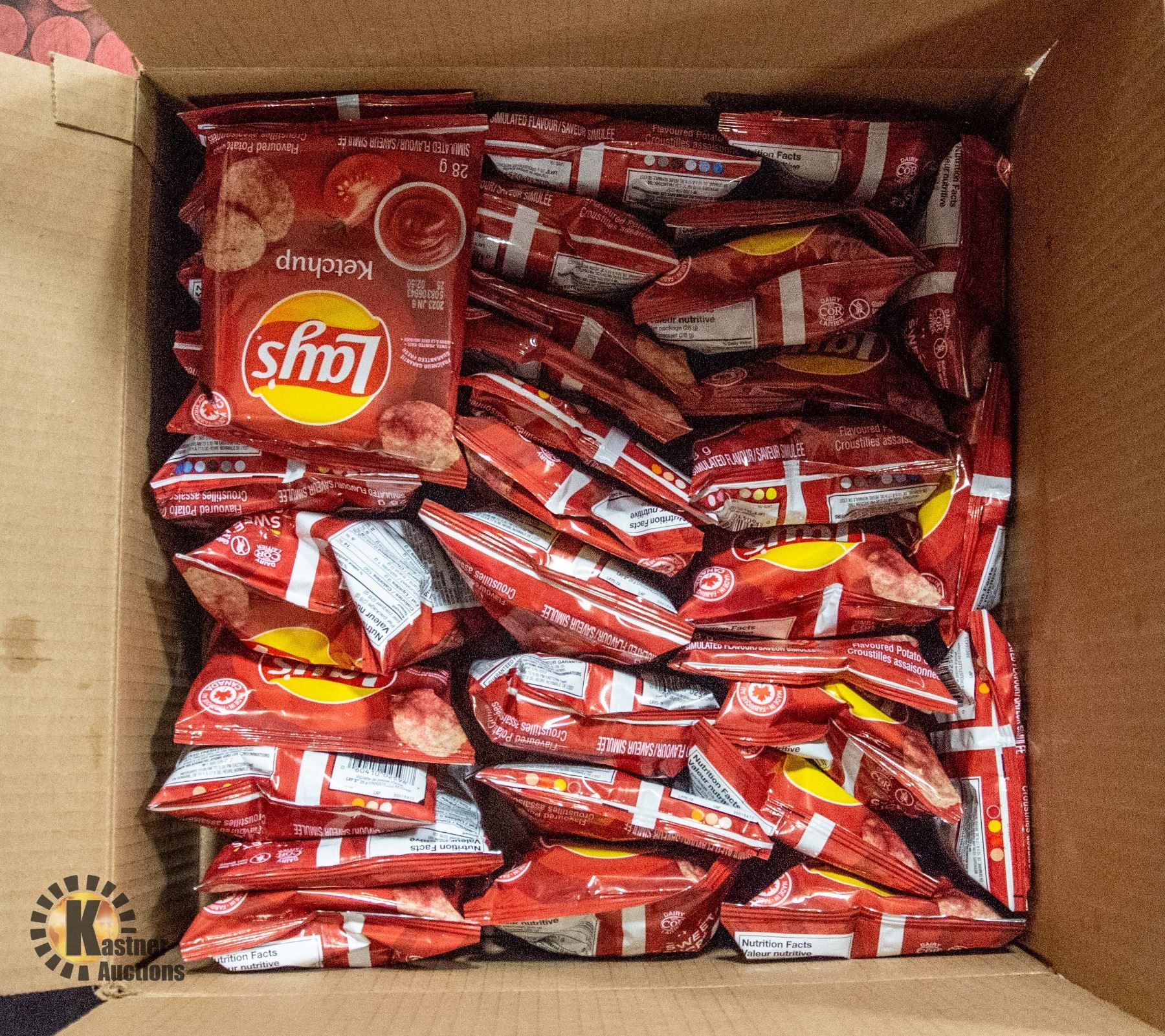 NEW CASE OF 35 X 28G BAGS OF LAYS KETCHUP CHIPS