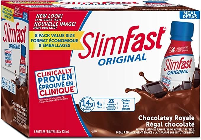 NEW CASE OF 8 X235ML SLIMFAST ORIGINAL CHOCOLATELY