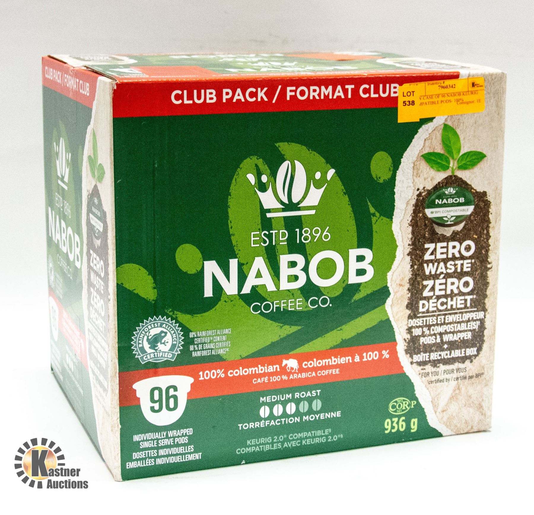 NEW CASE OF 96 NABOB KEURIG COMPATIBLE PODS- 100%