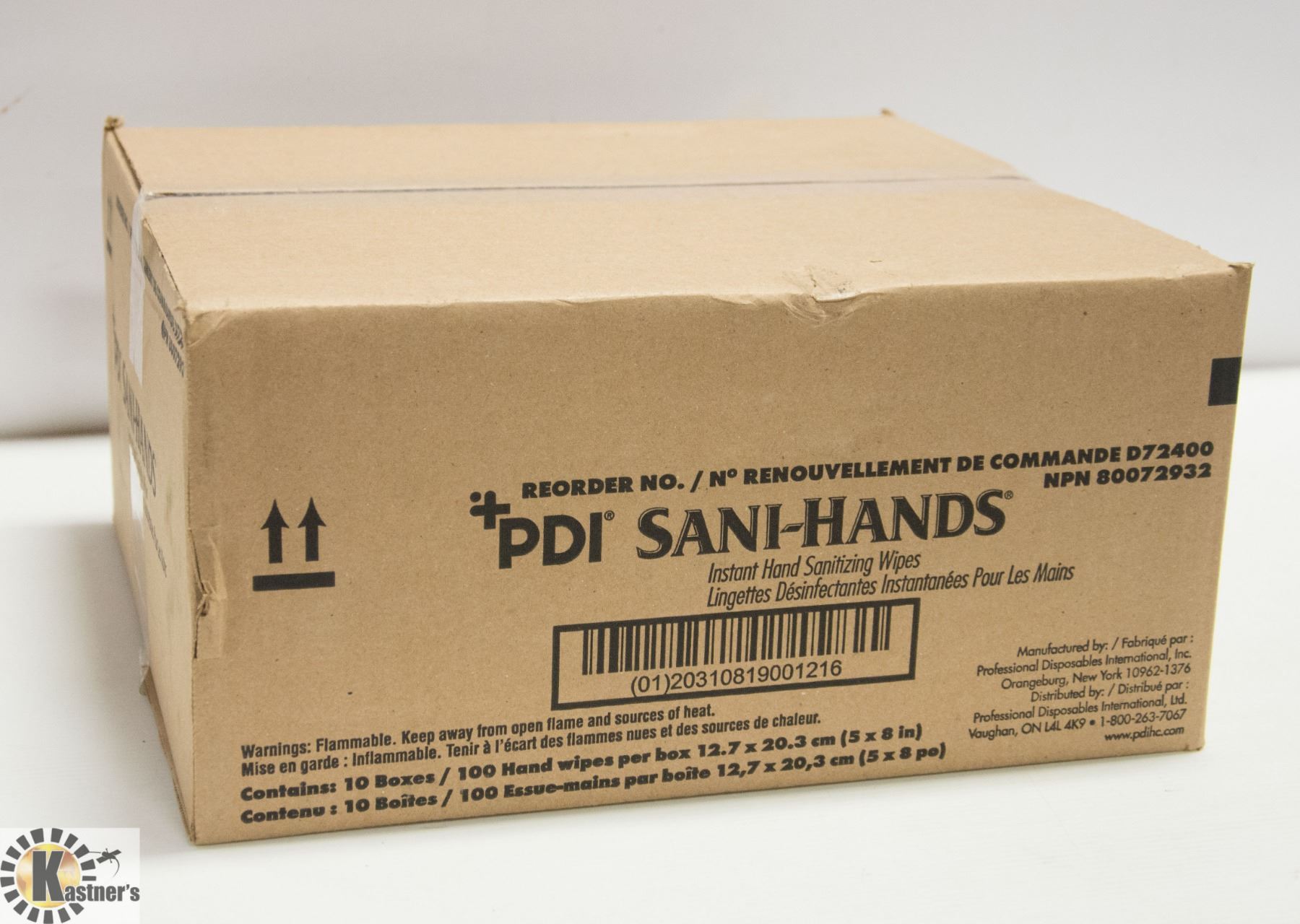 INSTANT HAND WIPES - CASE OF 10 INDIVIDUAL BOXES OF 100 INDIVIDUAL WIPES - 1000 WIPES PER CASE**ALL ITEMS MUST BE REMOVED BY 5PM MONDAY, OCTOBER 10TH, 2022. ALL REMAINING ITEMS WILL BE SUBJECT TO A $6.00 PER DAY STORAGE CHARGE. ANY ITEMS REMAINING AFTER MONDAY, OCTOBER 24TH, 2022 WILL BE CONSIDERED FORFEITED. NO REFUNDS WILL BE ISSUED FOR FORFEITED ITEMS. TO SCHEDULE A PICK UP APPOINTMENT CLICK HERE