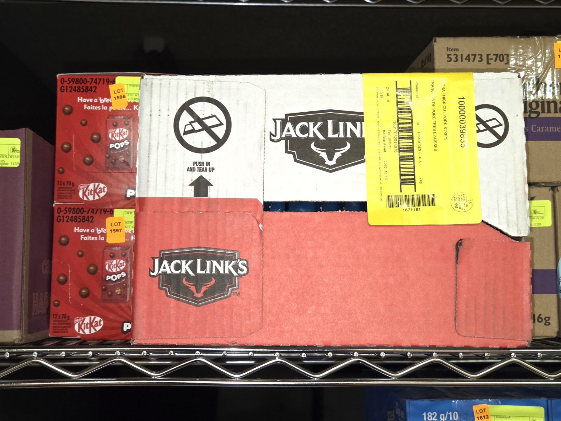 THICK CUT PORK STRIPS, BB APR 18 2025, SHELF STABLE, AMZ SES **ALL ITEMS MUST BE REMOVED BY 5PM SATURDAY, APRIL 3RD 2025. ALL REMAINING ITEMS WILL BE SUBJECT TO A $6.00 PER DAY STORAGE CHARGE. ANY ITEMS REMAINING AFTER MONDAY, MAY 19TH 2025 WILL BE CONSIDERED FORFEITED. NO REFUNDS WILL BE ISSUED FOR FORFEITED ITEMS. TO SCHEDULE A PICK UP APPOINTMENT CLICK HERE