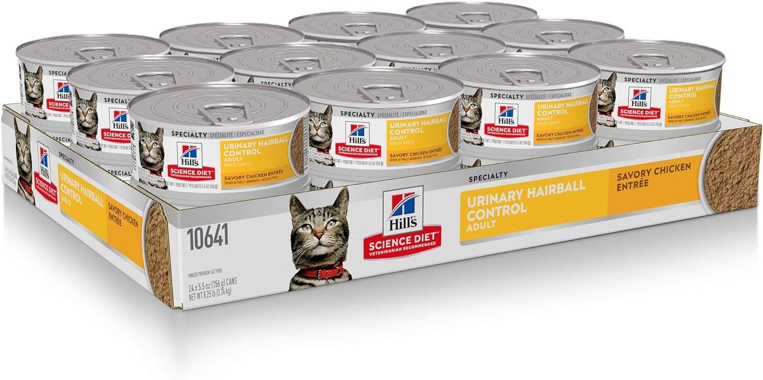 CAT FOOD, 24 X 156G CANS, URINARY HAIRBALL CONTROL, ADULT, SAVOURY CHICKEN ENTREE, BB OCT 2025, AMZ SES
