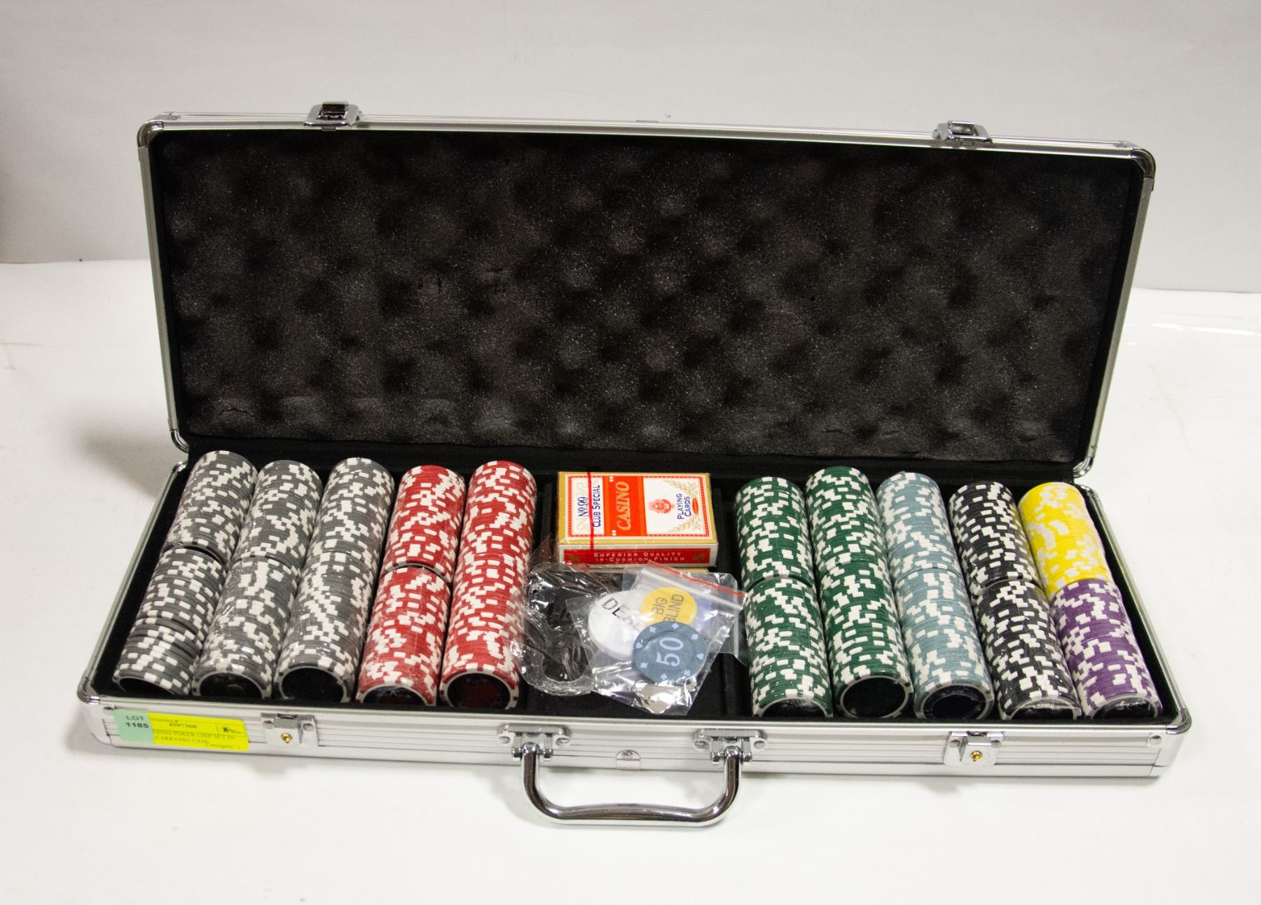 NEW CASINO POKER CHIP SET IN METAL CARRYING CASE
