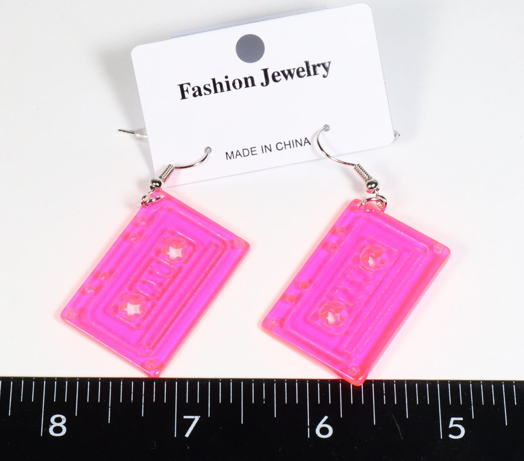 NEW CASSETTE THEME DROP EARRINGS HOT PINK