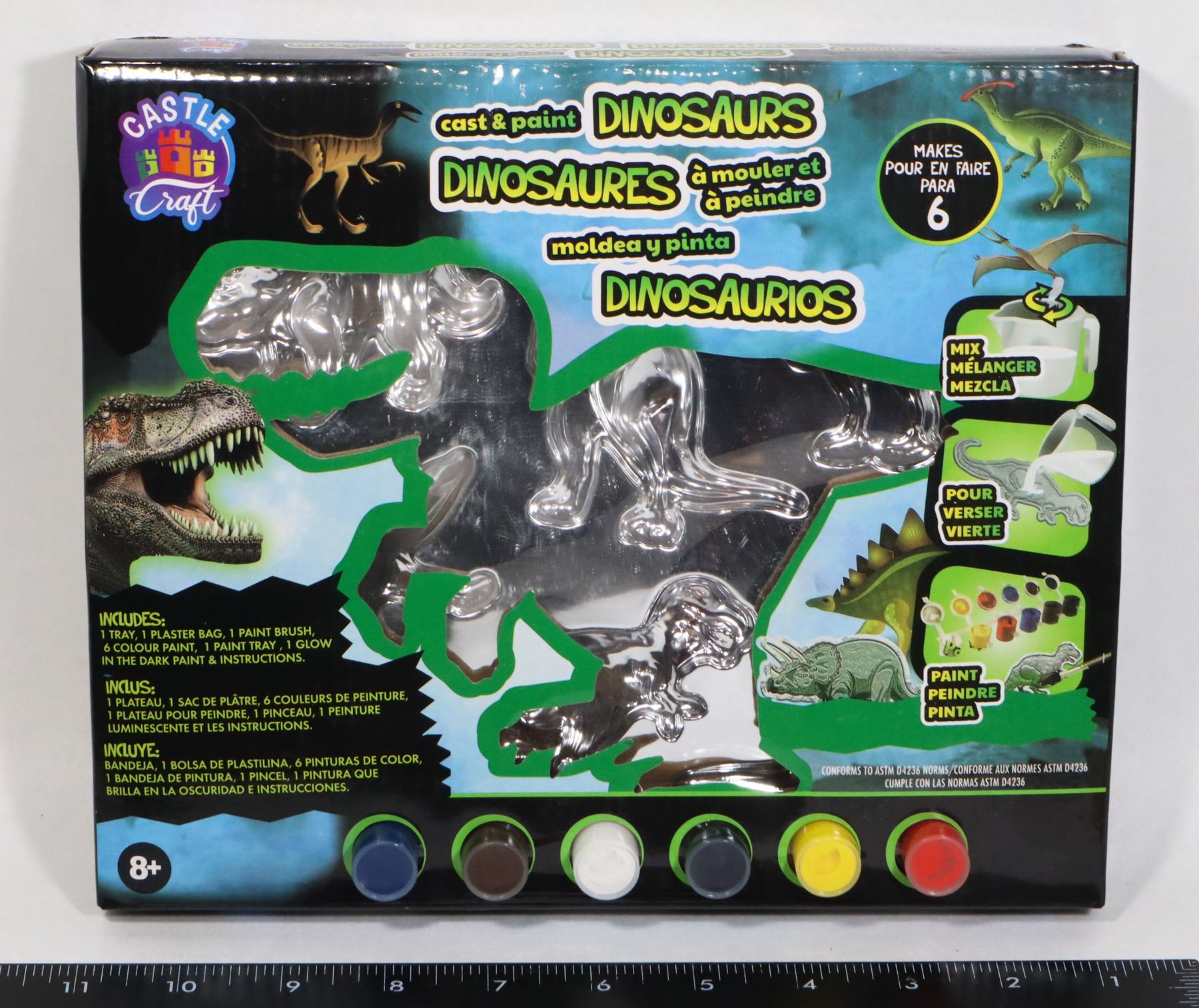 KIT INCLUDES 1 TRAY, 1 PLASTER BAG, 1 PAINT TRAY,1 PAINT BRUSH, 6 PAINT COLORS, 1 GLOW IN THE DARK PAINT AND INSTRUCTIONS