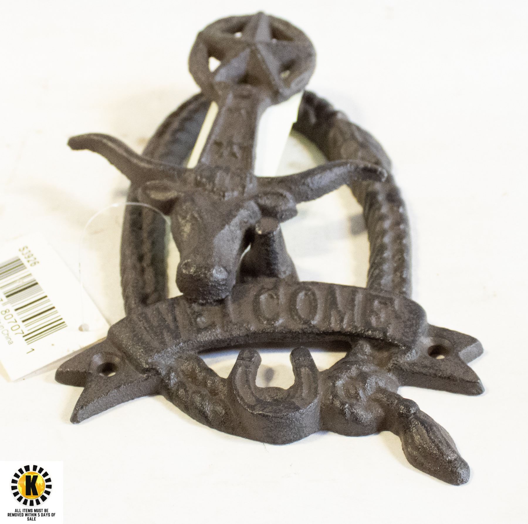 NEW CAST IRON DOOR KNOCKER - LONGHORN