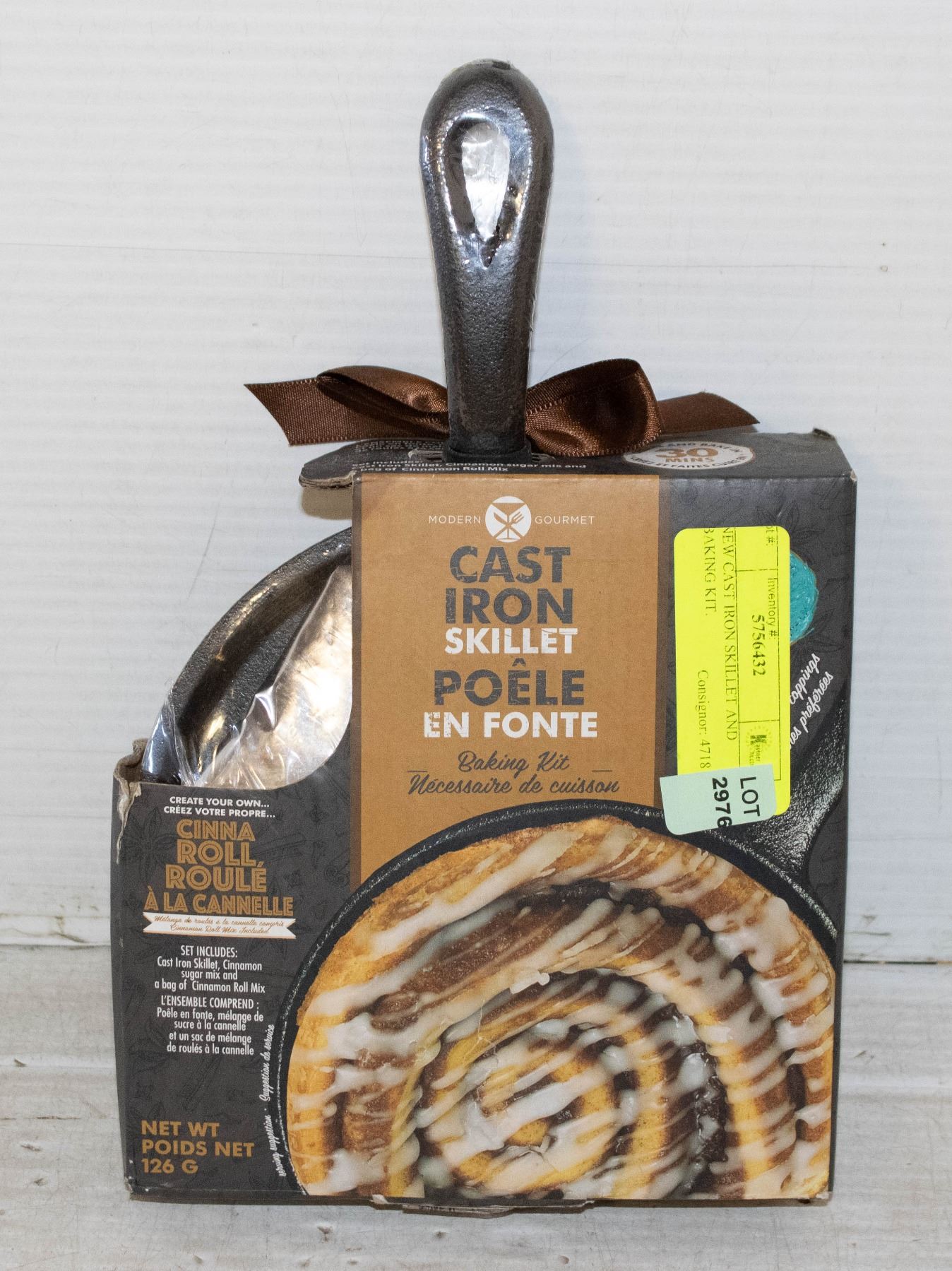 NEW CAST IRON SKILLET AND BAKING KIT.