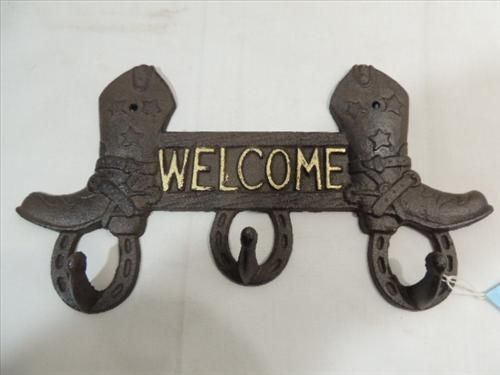NEW CAST IRON WESTERN STYLE 3 HOOK COAT RACK. WALL MOUNT. AS SHOWN. VIEW PICTURE FOR DETAIL.